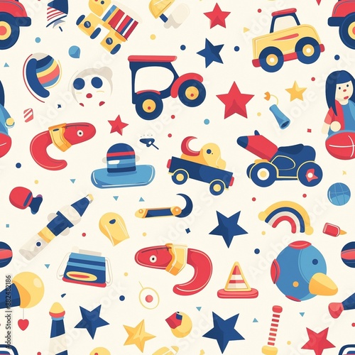Cyclic seamless repeating pattern of various colorful toys and objects.