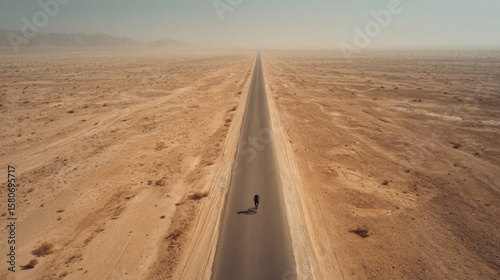Cyclist on Desert Road Aerial View