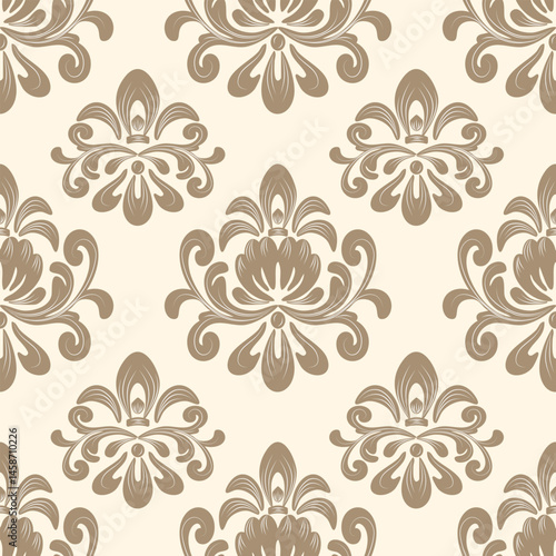 Damask seamless pattern with flowers, Brown and cream ornamental and background, vintage design, vector illustration elegant for textile, bedding, curtains, cushion cover, rug, wall paper, scarf