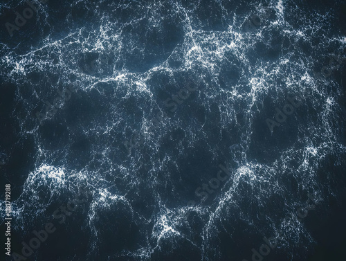 Dark Blue Ocean Surface with White Sea Foam Creates a Textured Background