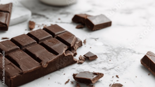 Dark chocolate bar broken on marble