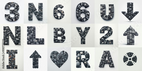 Dark gray and red stones Tiling Lettering Typeface. AI generated illustration