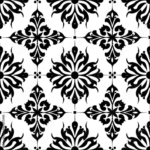 Dark, intricate, repeating floral pattern. Glittering, fine details