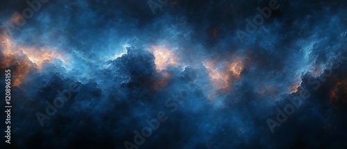 Dark, stormy clouds with orange and blue hues.