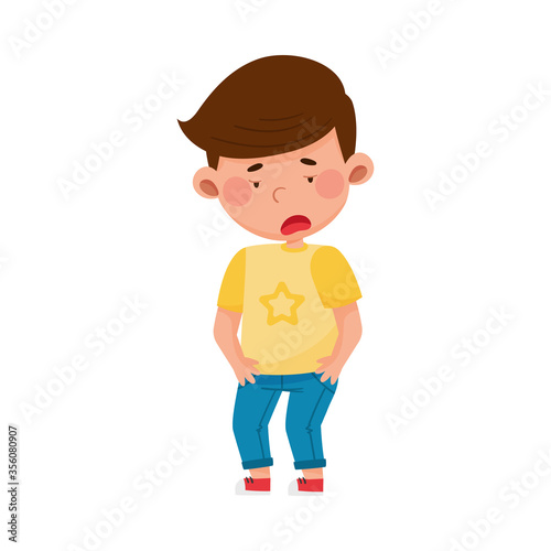 Dark-haired Boy Standing with Tired Face Vector Illustration
