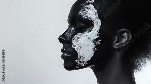 Darkly Painted Woman Close-up Photo Against Light Backdrop. AI Generated
