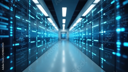 Data Clean Room. Futuristic data center aisle with glowing blue server