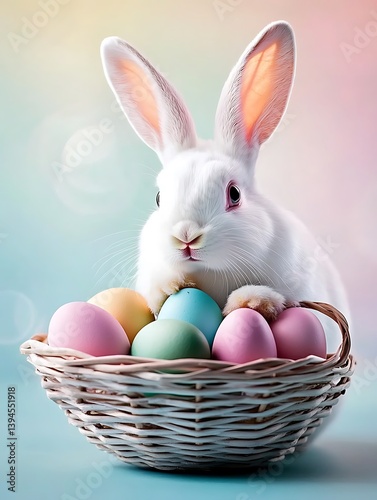 data comemorativo. Páscoa, ovos coloridos. cesto de ovos. Pelo branquinho