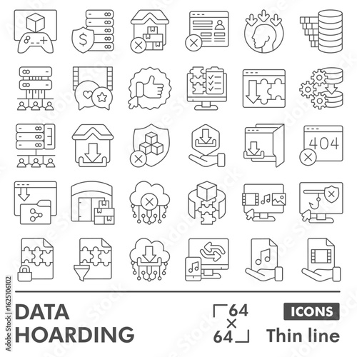 Data hoarding symbols collection or sketches, disk storage theme in linear style signs for web and app. Vector graphics isolated on white background.