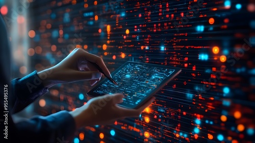 Data Science Concept with IT Engineer and Data Scientist Working on Digital Tablet in Data Center Network