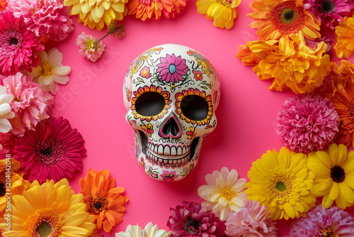Day of the Dead (El Día de los Muertos) Celebration - Sugar Skull and Flowers Background