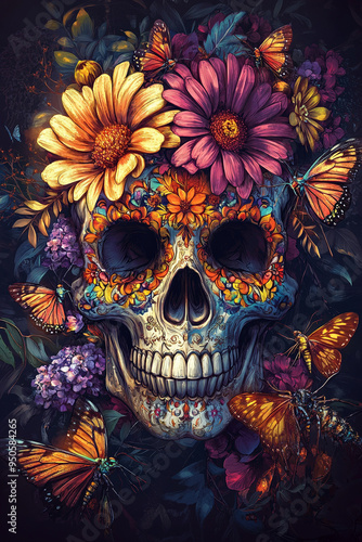 Day of the Dead, greeting banner, Mexican colorful skulls. Mexican, hispanic ceramic pottery Day of the Dead ,Dia de los Muertos, skulls