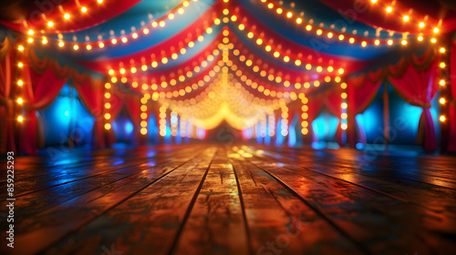 Dazzling D rendering of a circus tent bathed in vibrant light. Concept Circus Tent, 3D Rendering, Vibrant Light, Dazzling Effect