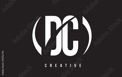 DC D C White Letter Logo Design with Black Background.