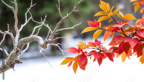 Dead Tree Branches Contrasting Vibrant Autumn Leaves