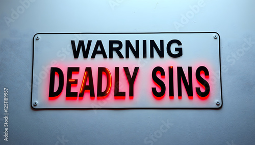 Deadly Sins. Warning sign with text on a white background, glowing neon. with white shades