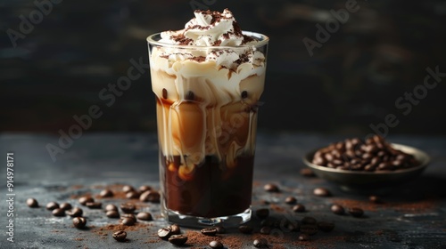 Decadent Iced Coffee with Whipped Cream and Chocolate Shavings