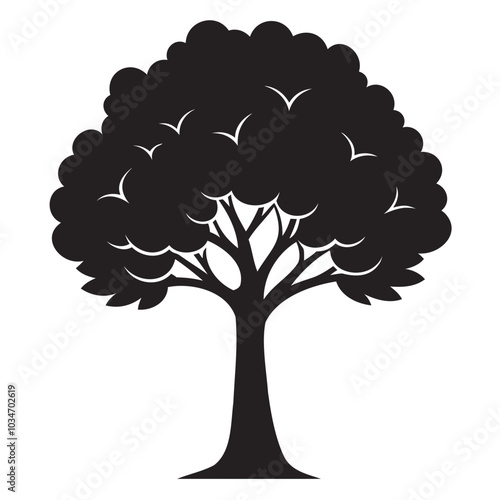 Deciduous tree black silhouette, Deciduous tree vector illustration, or vector art with transparent PNG