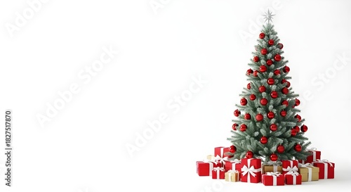 Decorated christmas tree with gifts isolated on white background