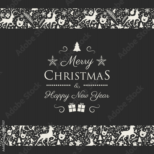 Decorative Christmas banner with decorations in retro style. Vector.