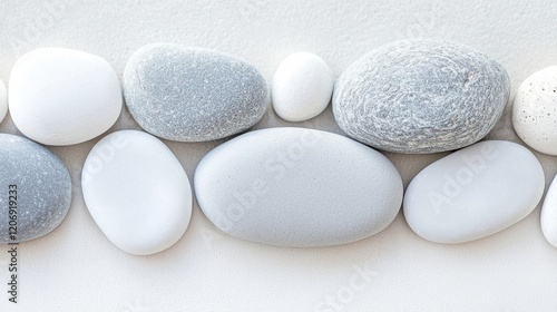 Decorative display of polished stones in a minimalist indoor environment for serenity