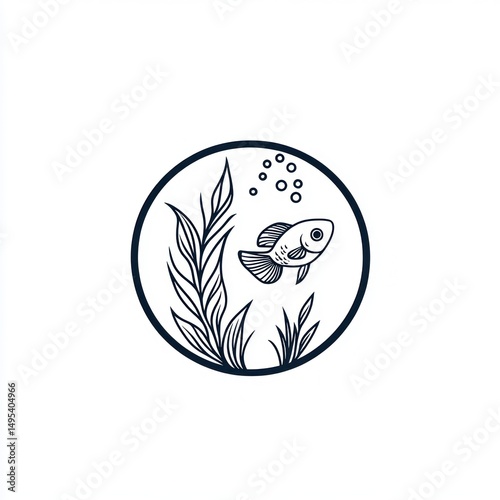 Decorative fish in aquatic environment. Illustration. Use Print media, website background