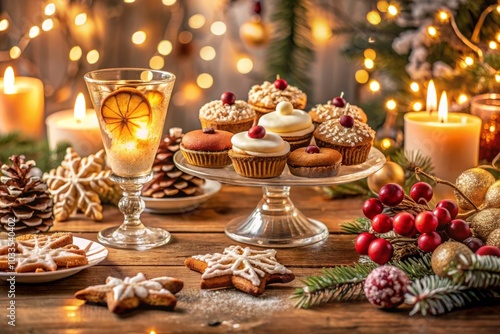 Decorative Glittering Christmas Food Photography for Inviting and Serene Mockup Decor, Generative AI Imagery of Festive Treats, Elegant Table Settings, Winter Wonderland