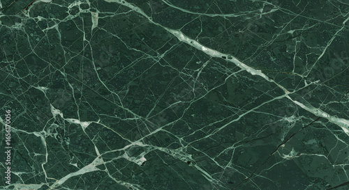 Deep emerald surface featuring a network of meandering white veins that create an organic pattern, evoking a sense of natural elegance and sophisticated aesthetic appeal. It has a soothing ambiance.
