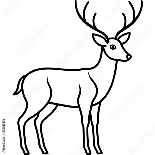 Deer black and white line drawing simple on white background