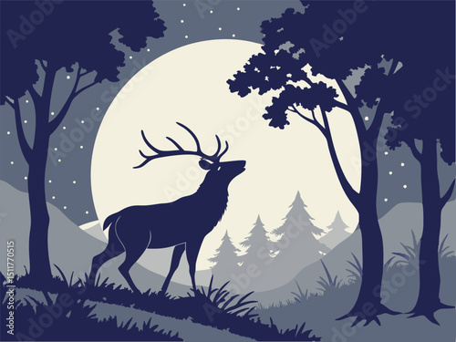 Deer Silhouette Under Full Moon in Forest