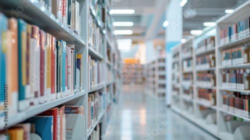 defocused photo of library, library background on white, bookshelf full of book on white. Minimalism style of library