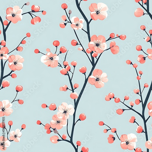 Delicate Blossom Patterns on Soft Blue Background for Design Projects