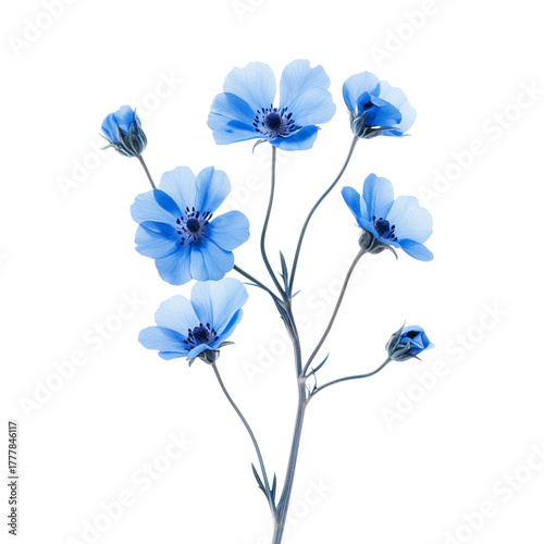 Delicate blue anemone flowers bloom against a transparent background