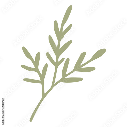 Delicate Branch in Bloom: This minimalist composition showcases a single, elegant branch of a plant against a pristine backdrop, embodying the purity and simplicity of botanical illustration.