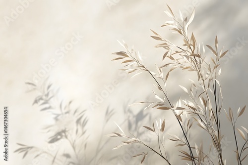 Delicate branches with subtle shadow play against a soft neutral textured background