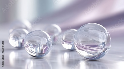 Delicate Glass Spheres Hovering over Bright Reflective Background