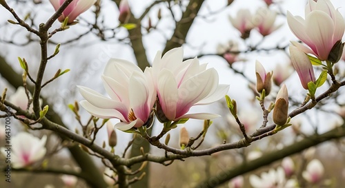 Delicate magnolia blossoms exuding tranquil beauty and springtime vitality filling the natural