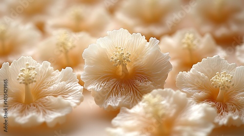Delicate pale peach hibiscus blossoms, closely arranged