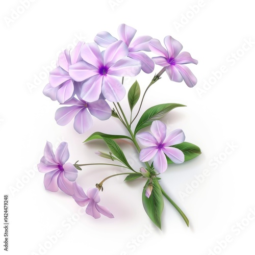 Delicate pastel phlox blossoms on a stem, artfully rendered.
