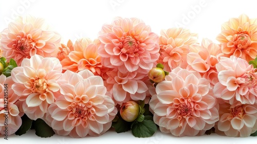 Delicate peach dahlias in a horizontal arrangement