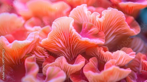 Delicate pink coral formations bathed in soft light, highlighting their intricate beauty and vibrant textures.