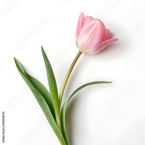 Delicate Pink Tulip on White Background