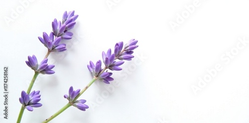 Delicate twigs with lavender flowers on a pure white background, garden, stem, petals
