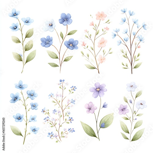 Delicate Watercolor Floral Collection Pastel Blossoms and Soft Greens on White