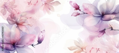 Delicate Watercolor Magnolia Flowers