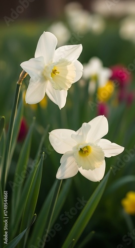 Delicate White Daffodils in Spring Garden - A Floral Portrait.
