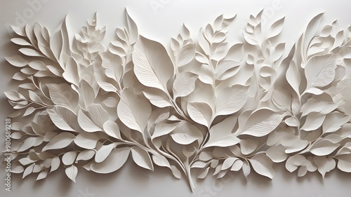 Delicate white floral wall pattern with a subtle three-dimensional texture, ideal