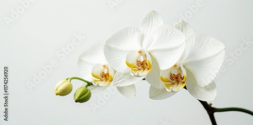 Delicate white orchid blooms on crisp white background, bloom, pure