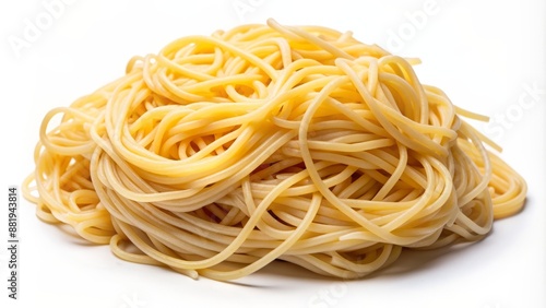 Delicately arranged, freshly cooked spaghetti strands form a compact, rounded bunch, elegantly isolated on a transparent, pale background.