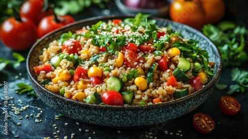 Delicious and Healthy Bulgur Salad with Tomatoes, Cucumbers, and Corn